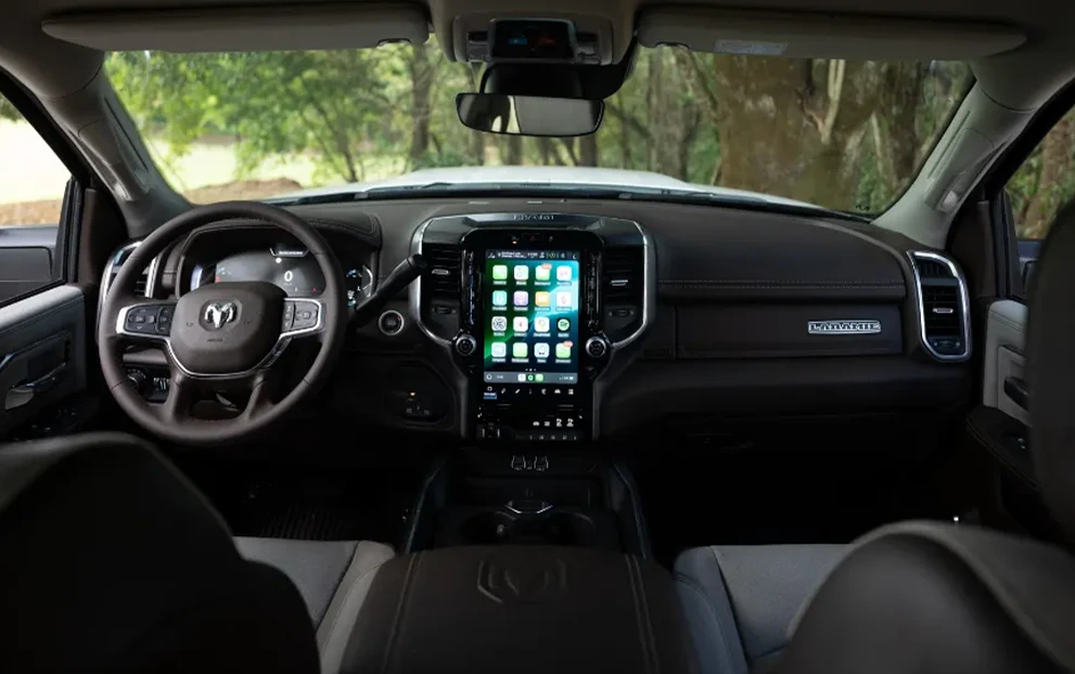 O para-choque agora traz grade texturizada, o logo da Ram na dianteira foi reposicionado e os faróis Full LED receberam atualização, garantindo um visual mais imponente e impactante para a sua picape.