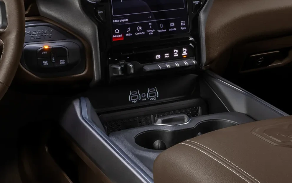 O controle eletrônico do freio de reboque da Ram 2500 diz aos freios do trailer o que fazer, conforme configuração definida pelo motorista. Além disso, a picape conta com sistemas que evitam a oscilação do trailer engatado.